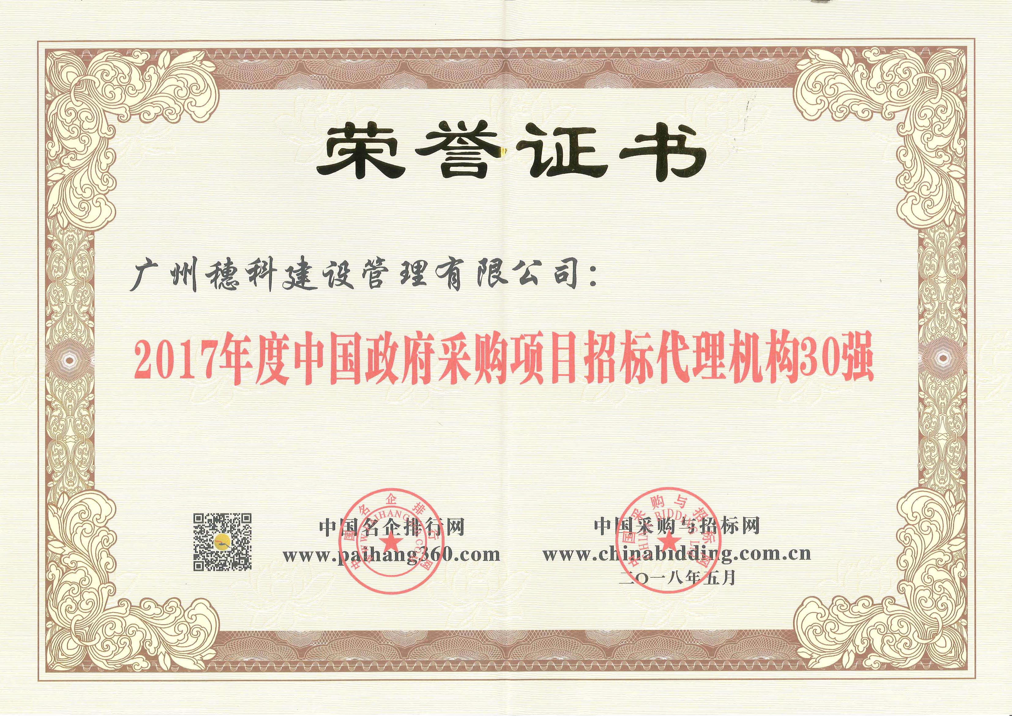 2017年度中國(guó)政府采購(gòu)項(xiàng)目招標(biāo)代理30強(qiáng)