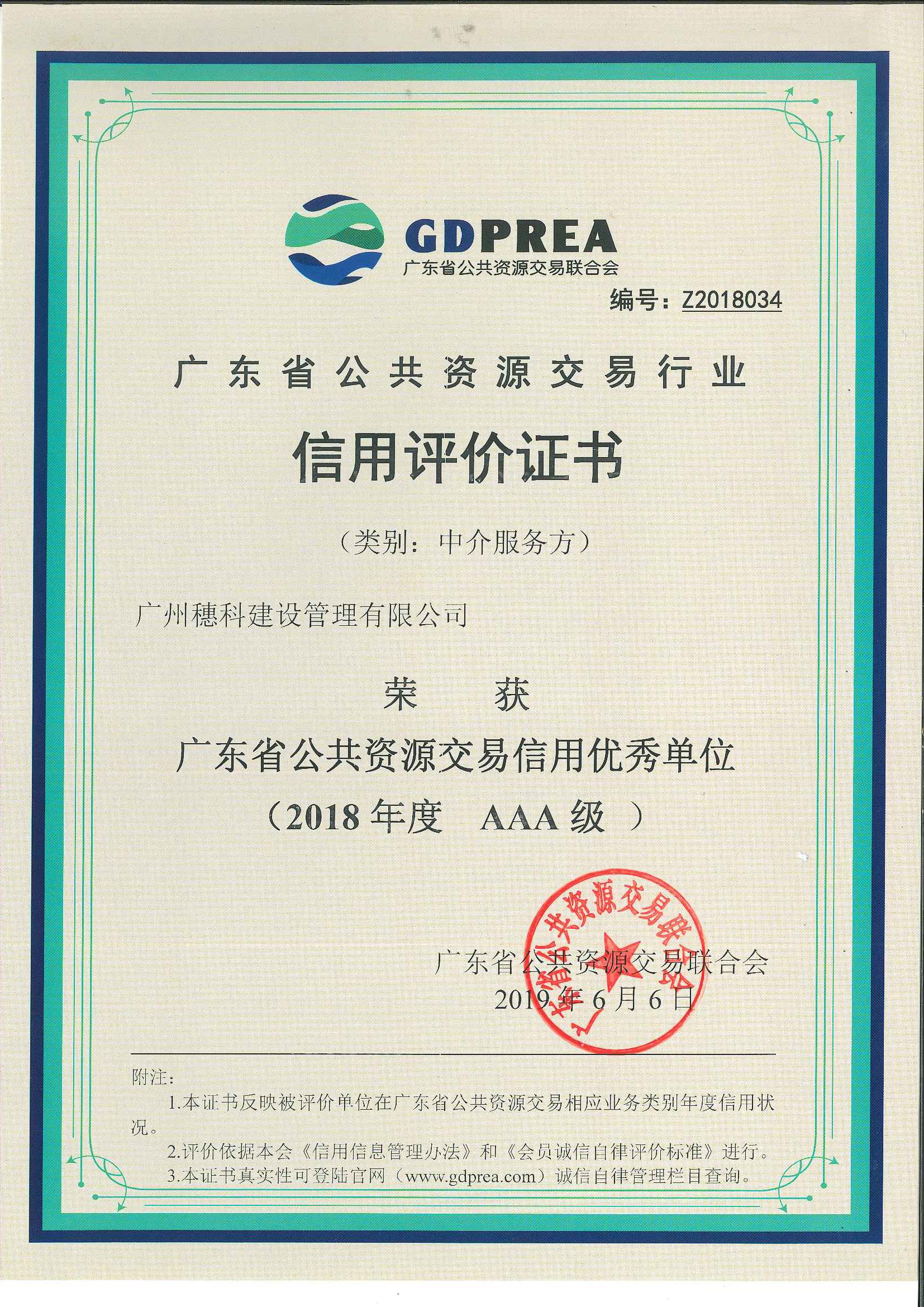 2018年度信用評(píng)價(jià)證書(shū)(中介服務(wù)方)