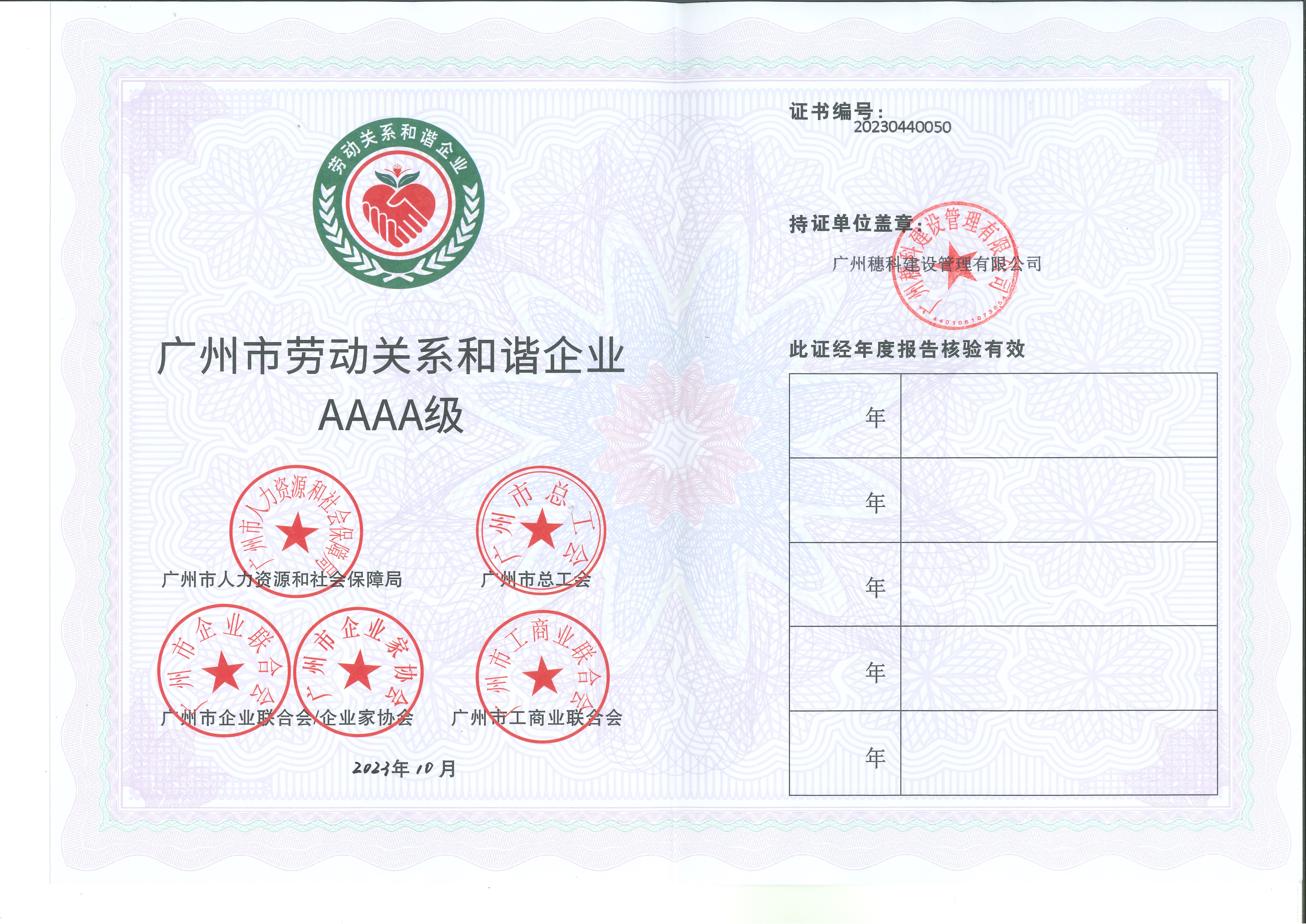 廣州市勞動(dòng)關(guān)系和諧企業(yè)AAA級(jí)