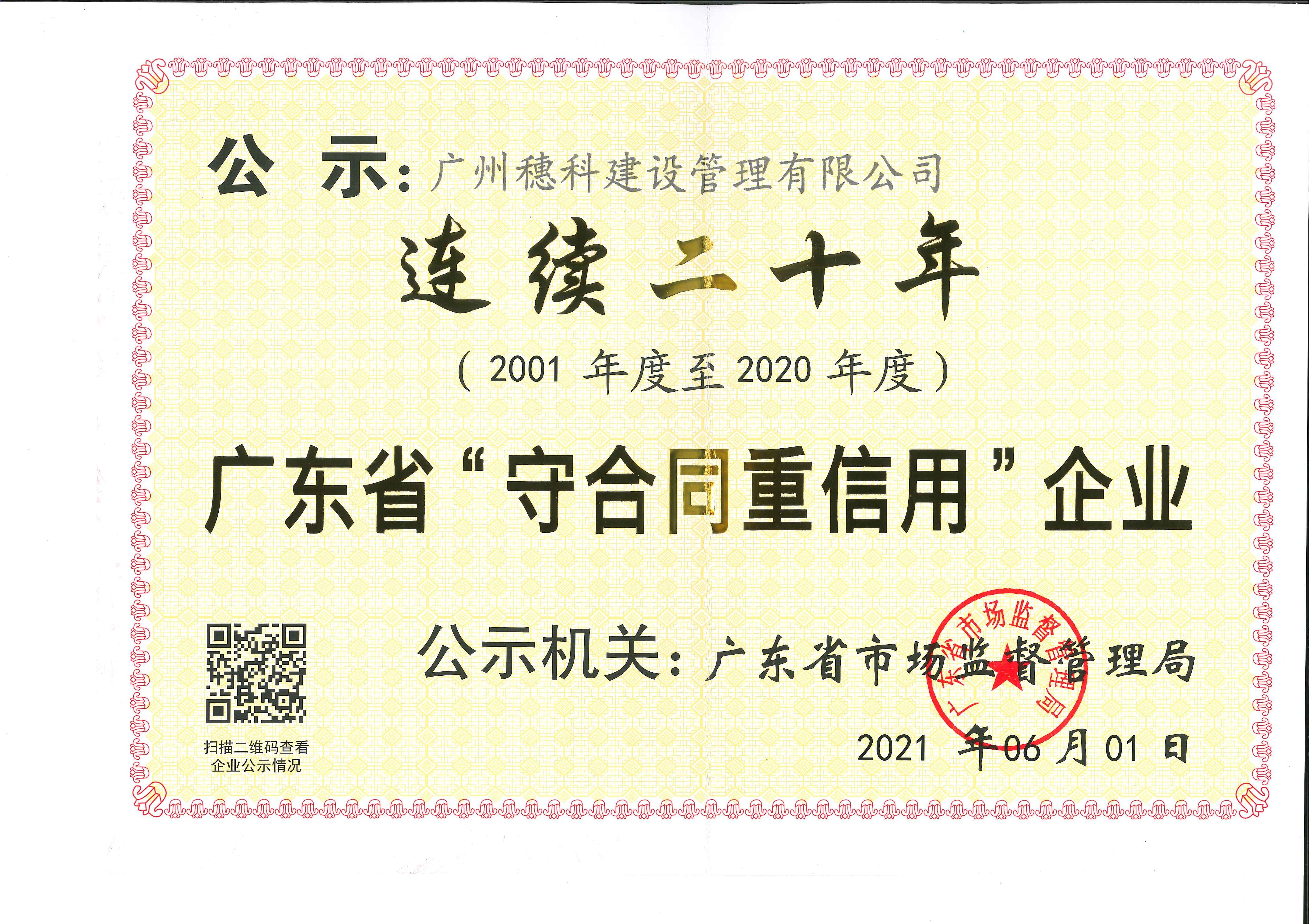 廣東省守合同重信用企業(yè)(連續(xù)二十年2001-2020)